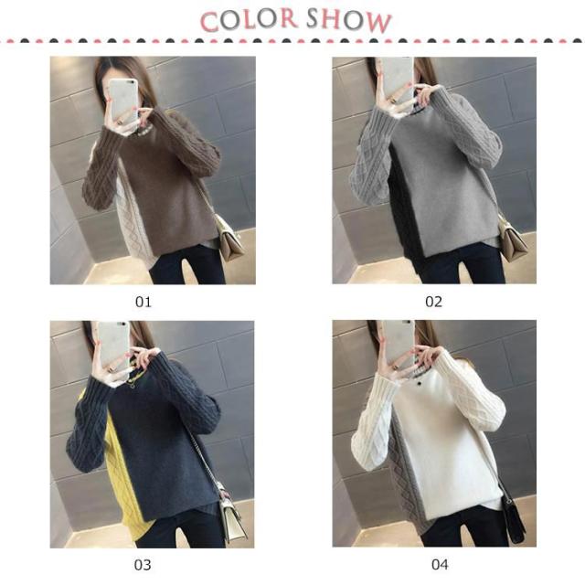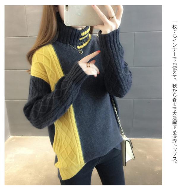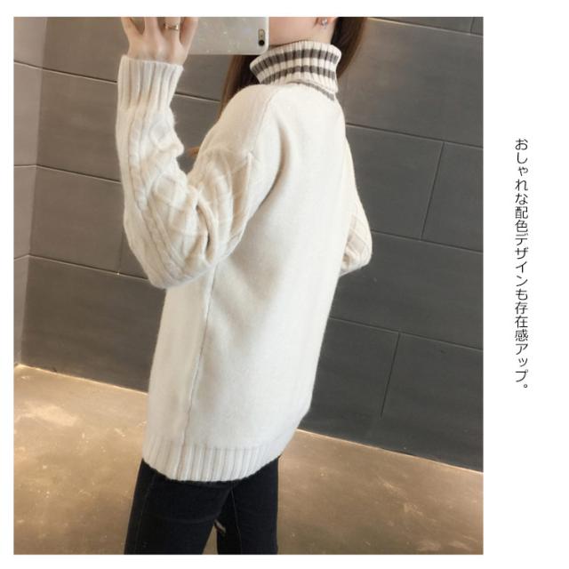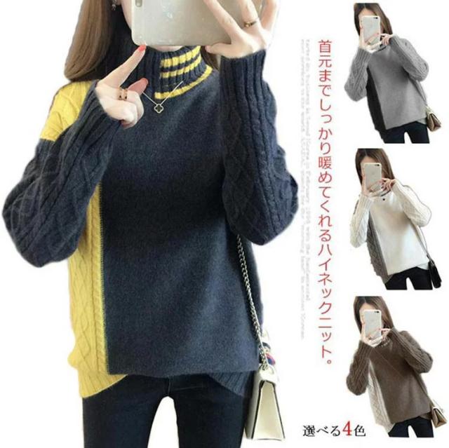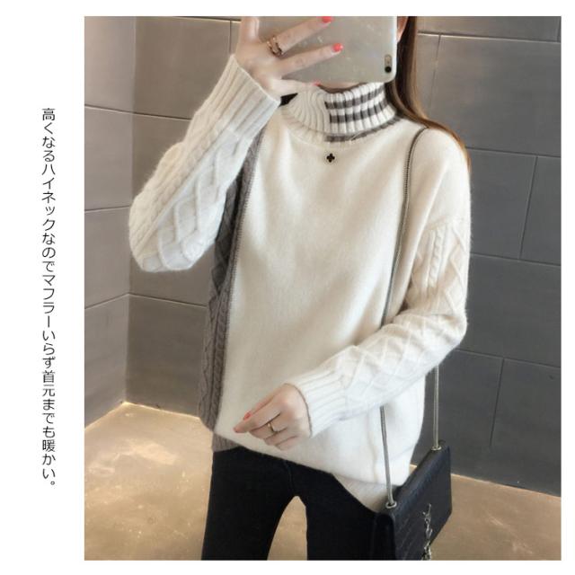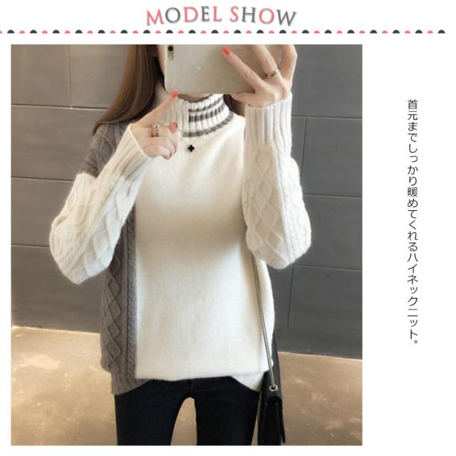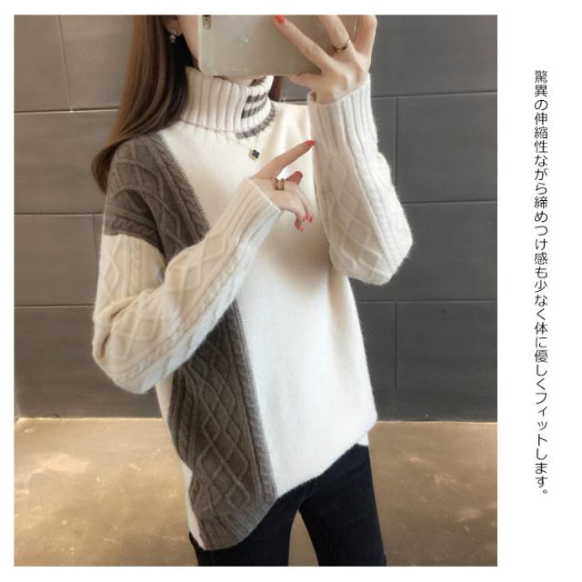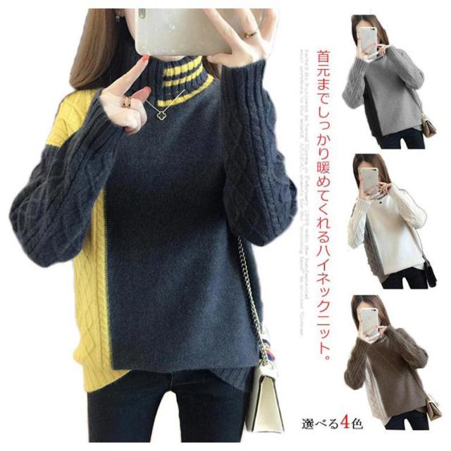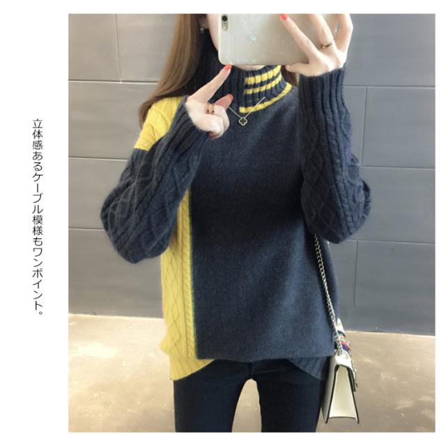 配色ニットトップス レディース ニットセーター ハイネックニット タートルニット タートルネック ニット セーター プルオーバー ケーブル編み ざっくりニット 厚手 防寒 冬服 冬物 秋冬 おしゃれ 可愛い