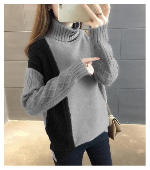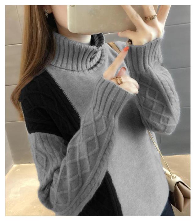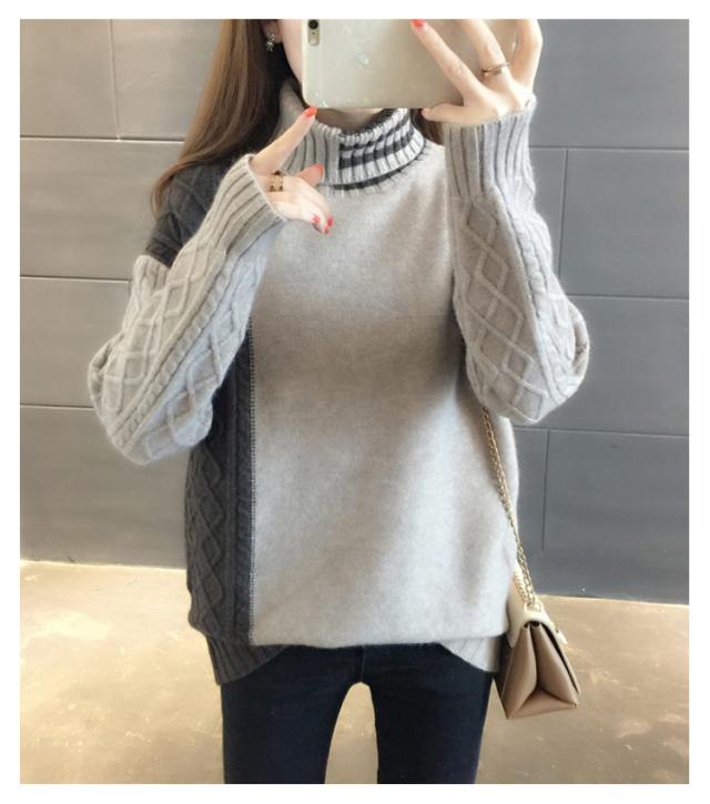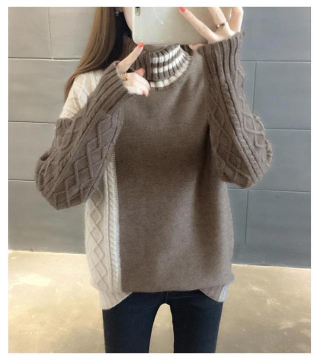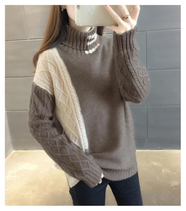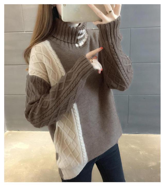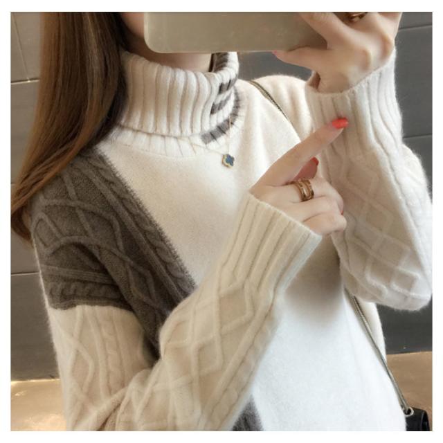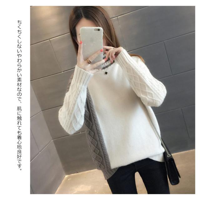 配色ニットトップス レディース ニットセーター ハイネックニット タートルニット タートルネック ニット セーター プルオーバー ケーブル編み ざっくりニット 厚手 防寒 冬服 冬物 秋冬 おしゃれ 可愛い