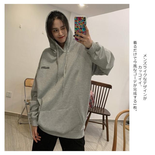 ビッグサイズ パーカー フード付き プルオーバー パーカー トップス 長袖 レディース メンズライク オーバーサイズ ゆったり 薄手 春秋 ラフ 韓国ファッション
