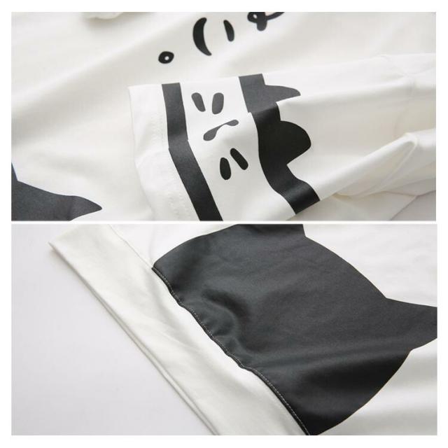 | 2018夏新作!大カワイイ猫顔プリントの半袖プルオーバーの登場です。 配色の猫プリント入りで愛猫家にぜひおすすめな一枚。 フードも付いて、おしゃれな後ろ姿を演出しました。 ゆったりとした五分袖なので腕カバー効果も抜群。 薄くすぎず、厚くすぎず、程度良い厚さもあるコットン素材を使用し、よい着心地です。 | |