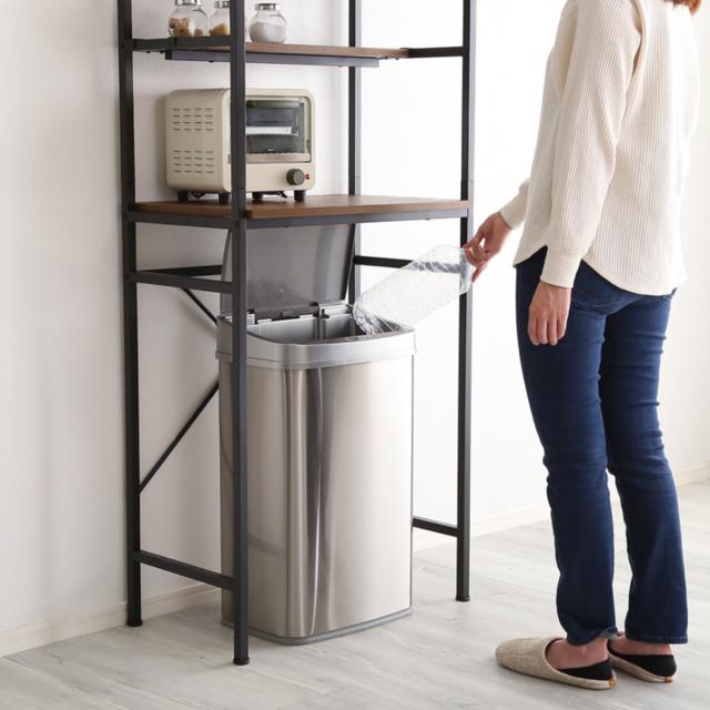 スリムな見た目ながら50Lと大容量のゴミ箱です。キッチンのすき間や部屋のすみ、デスク周りに置いてもすっきり収まります。