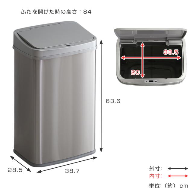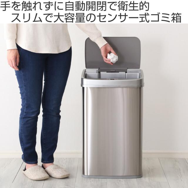 ゴミ箱 50L センサー式 ( ごみ箱 50リットル センサー ふた付き 幅38.7 分別 スリム 自動 開閉 電池式 袋 見えない 大容量 自動開閉 ステンレス ゴミ箱 ふた付き)