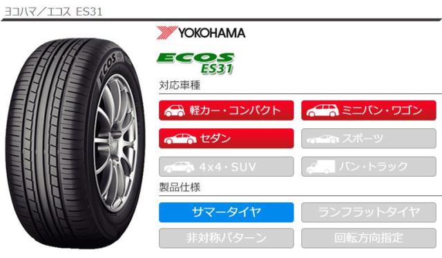 165/55-15 1655515 15インチ sum1341yhes31 ECOS ES31 YOKOHAMA ヨコハマタイヤ 横浜ゴム エコス 正規品 春タイヤ 夏タイヤ 夏用タイヤ タイヤ一番 タイヤサイズ 溝 タイヤ交換 タイヤこうかん タイヤくみかえ 組み換え タイヤ取付対象 タイヤ取付可能 タイヤ交換可能 F6538 summertire puncture tiret4p