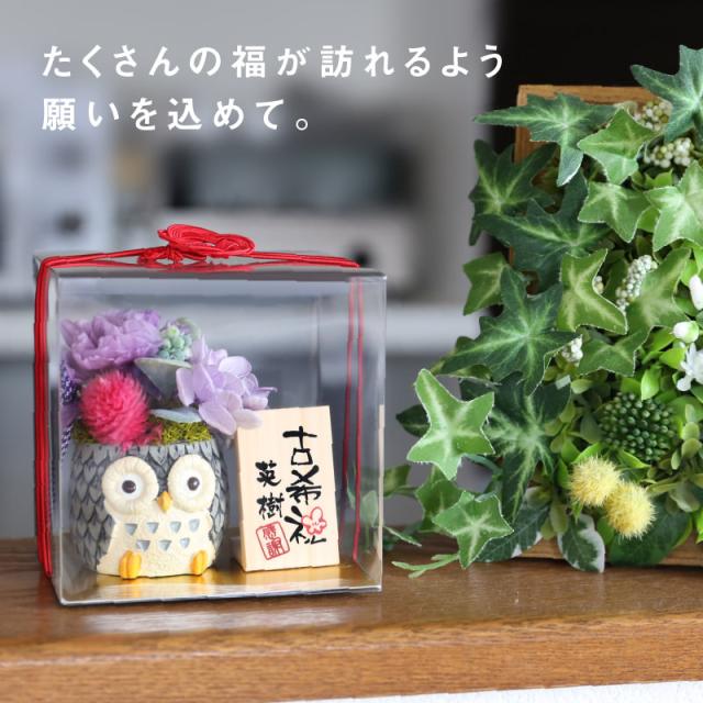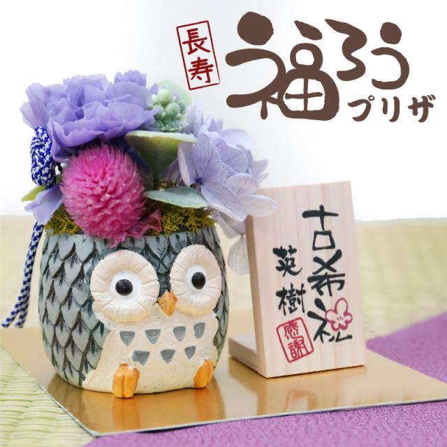 敬老の日 プレゼント 敬老の日 ギフト 名入れ ギフト プリザーブドフラワー フラワーアレンジメント 花 喜寿のお祝い 和風 名入れ 長寿 ふくろう プリザ 翌々営業日出荷 かわいい 花