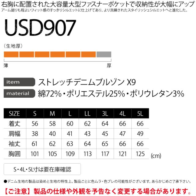 イーブンリバー EVENRIVER 作業服 USD907 ストレッチデニムブルゾンX9 5L 秋冬用 作業着 おしゃれ