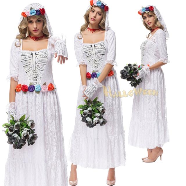 コスプレ 白 ロング丈 ゴースト花嫁ドレス ゾンビ ホラー系 ハロウィン衣装 【送料無料】《代引き・日時指定・同梱不可》