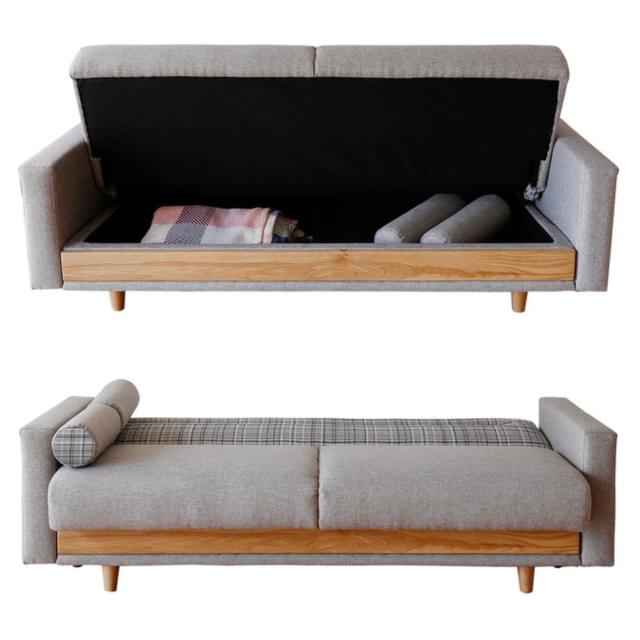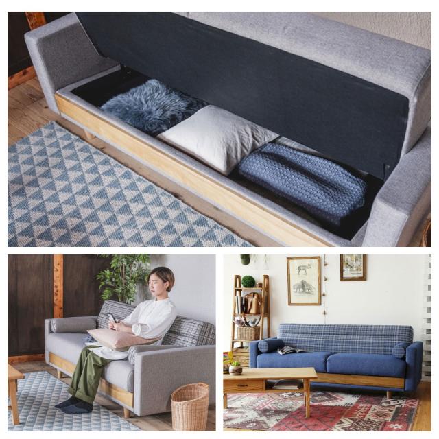 | 説明 | 座る、眠る、収納するの3役をこなすソファベッド。 定番フォルムのソファーベッドをnoraのテイストに落とし込みました。 座る、眠る、収納するの3役をこなし、機能的です。 アイキャッチな見た目になるよう、座面下の木部や背もたれのチェック生地など細部にこだわりました。 内部構造は比重の違うウレタンを2層に重ね、Sバネで支えているので、耐久性にも優れています。 座面下の収納スペースも大きく便利です。 |