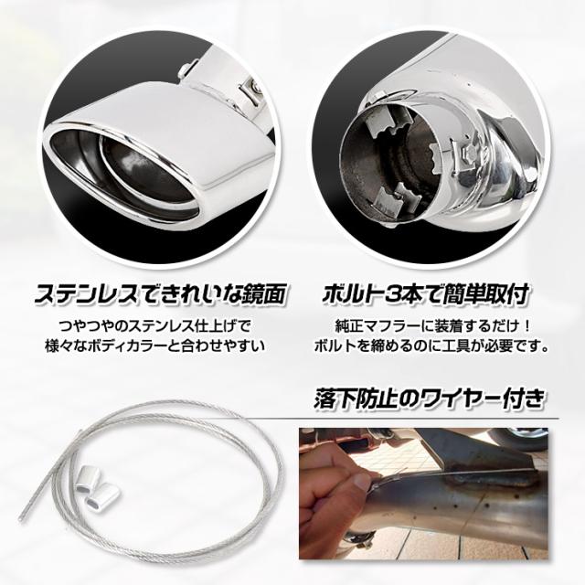 エクステリアに高級感をプラスして、ワンランク上のドレスアップを手に入れられます! 形状はシンプルなオーバルタイプ! 取付はボルト3カ所で取付し、さらに落下防止ワイヤー付きなので万が一の時も安心です。 |