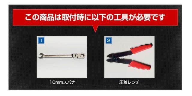 ■振動が多い場所になるのでねじが緩む可能性が高いので必ず落下防止ワイヤーは取り付けてください。 ■本品の取付には工具が必要となります。(10mmスパナ・圧着レンチ) |