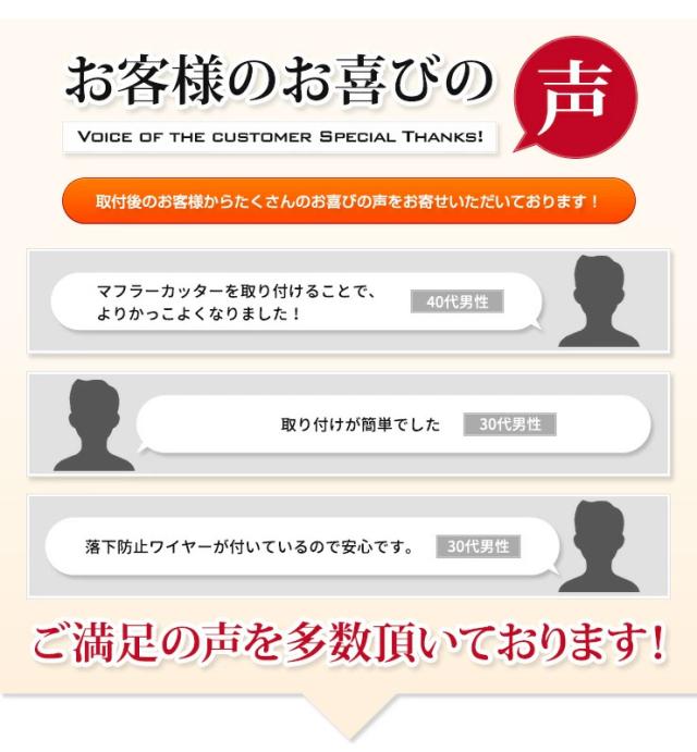 | 商品詳細 | 高品質なステンレス素材を使用した、マフラーカッターが登場。