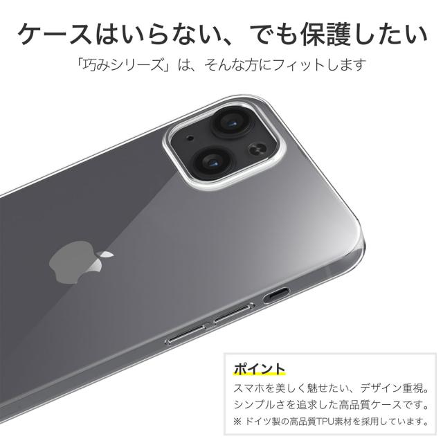 主役であるスマートフォンをより美しくするため “ シンプル ” にこだわったクリアケース、巧み (たくみ) シリーズ 。 ジャック部分、カメラ周りを守りつつも存在感をゼロに。軽量設計により本体以上のケースを目立たせません。