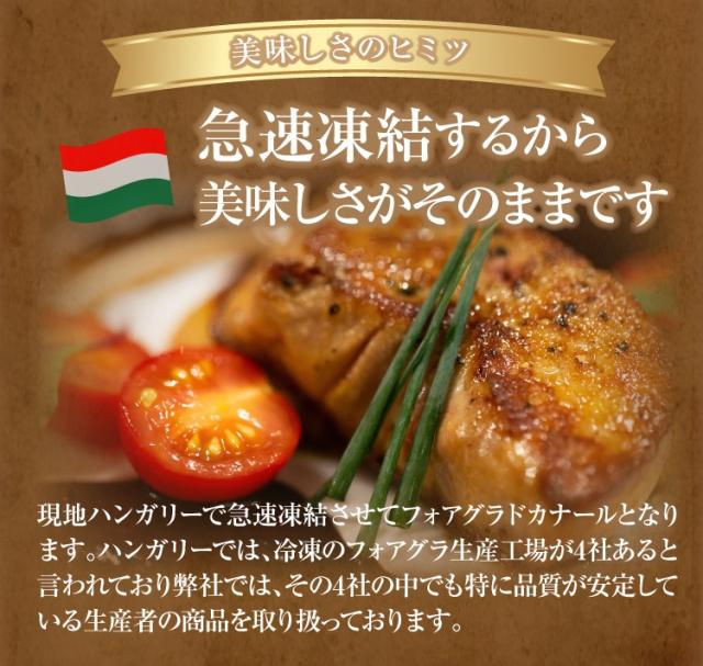 ハンガリー工場で窒素凍結により瞬間冷凍された高品質で鮮度バツグンのカナール・フォアグラです。