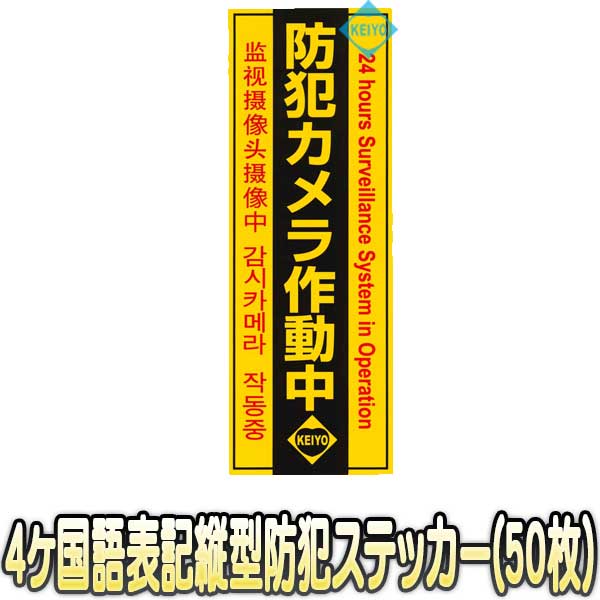 Keiyo-STV50(ケイヨーオリジナルステッカーV50枚セット)【4ヶ国語表示縦型防犯ステッカー】【4ヶ国語対応防犯シール50枚セット】