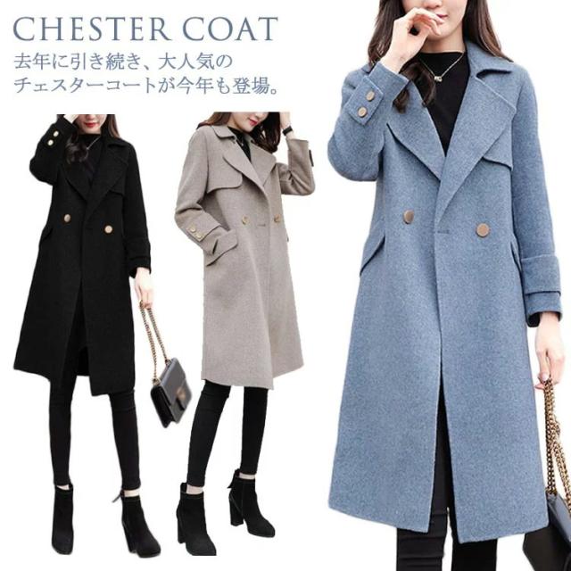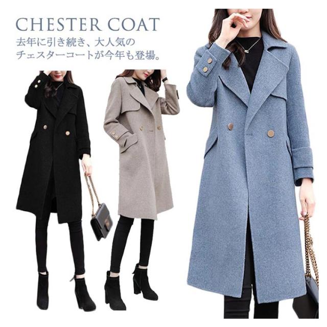 ロング コート メルトンコート チェスターコート レディース ロング丈 チェスターコート ミドル丈 メルトン 厚手 コート チェスター コート アウター ゆったり 秋冬