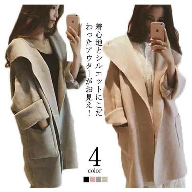 フード付き トレンチコート レディース アウター コート カーディガン 羽織り ミディアム丈 ロングカーディガン シンプル 無地 ゆったり 可愛い 春服 春物