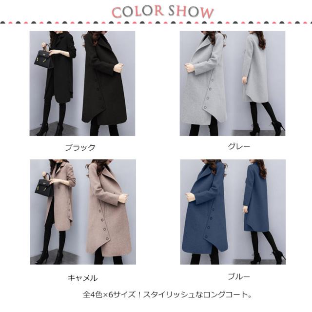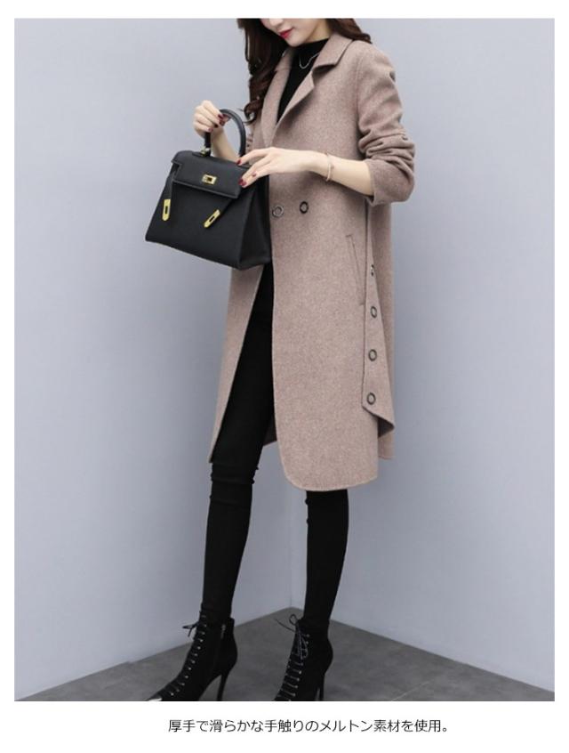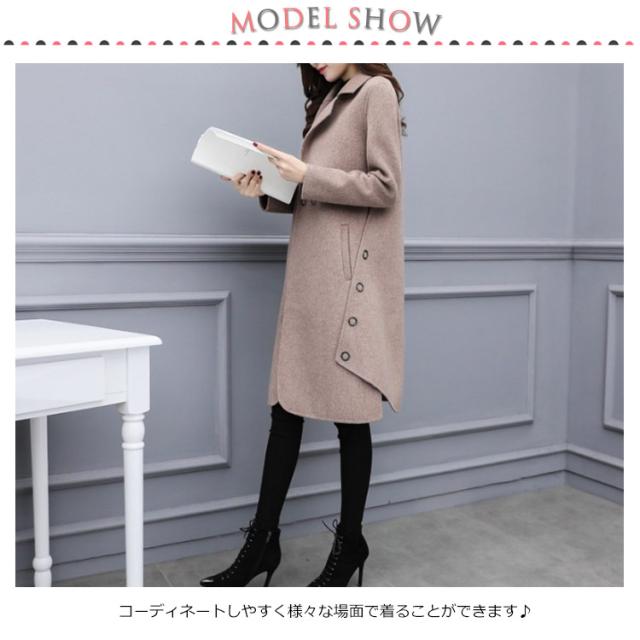 | 全4色×6サイズ!スタイリッシュなロングコート。 厚手で滑らかな手触りのメルトン素材を使用。 フロントはボタン付け仕様、着脱しやすい。 両サイドに飾りボタンデザイン、スタイリッユ感を演出。 両サイドにビッグポケット仕様、手を入れたっり、小ものを入れたっり等とても便利です。 コーディネートしやすく様々な場面で着ることができます♪ | |