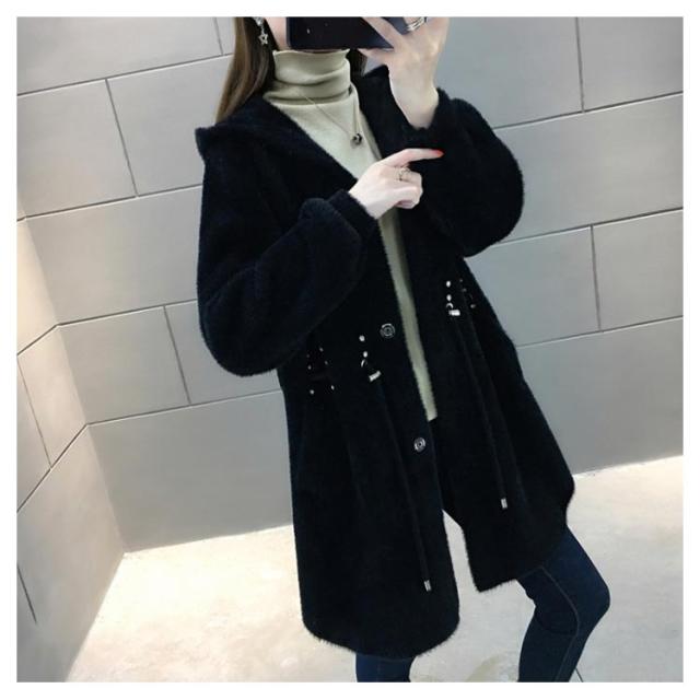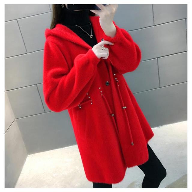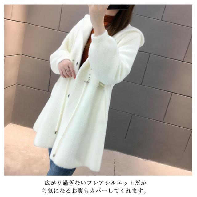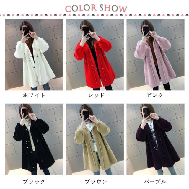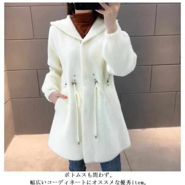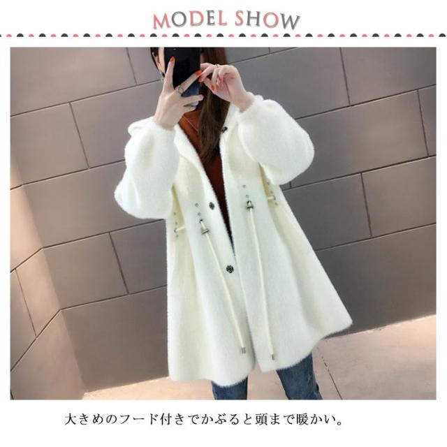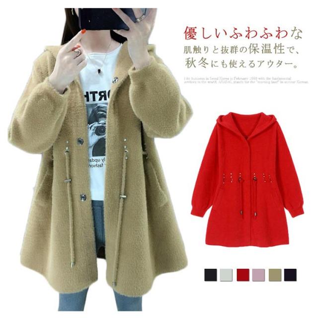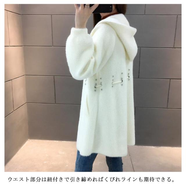 全6色×5サイズ!ボアコート モヘアタッチ カーディガン ロングカーディガン ロングコート フード付き ウエスト紐付き aライン 暖かい 秋冬 厚手 ふわふわ もこもこ 可愛い オトナ 女性