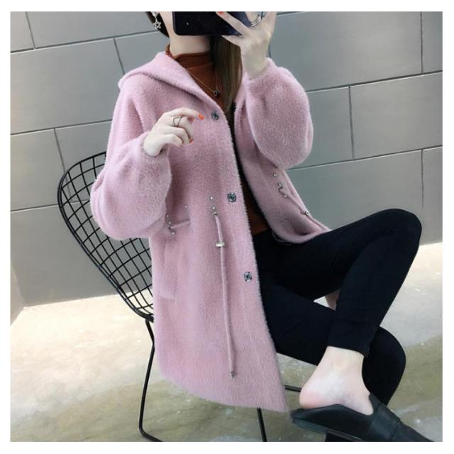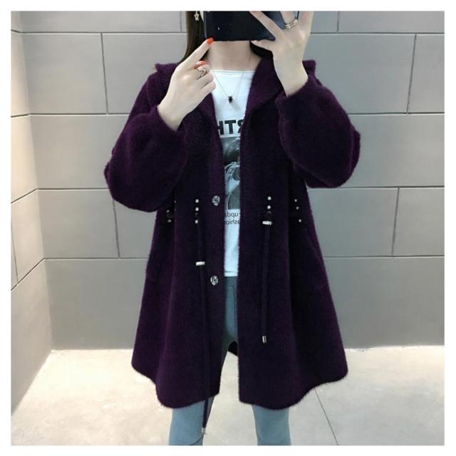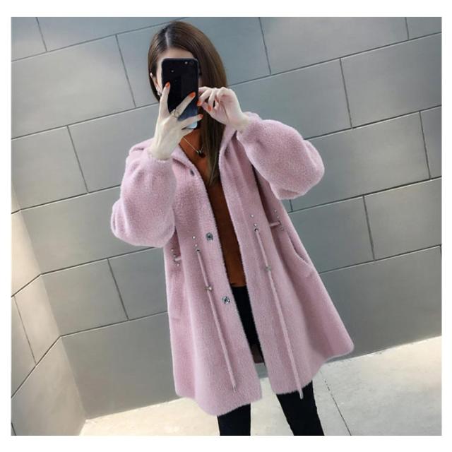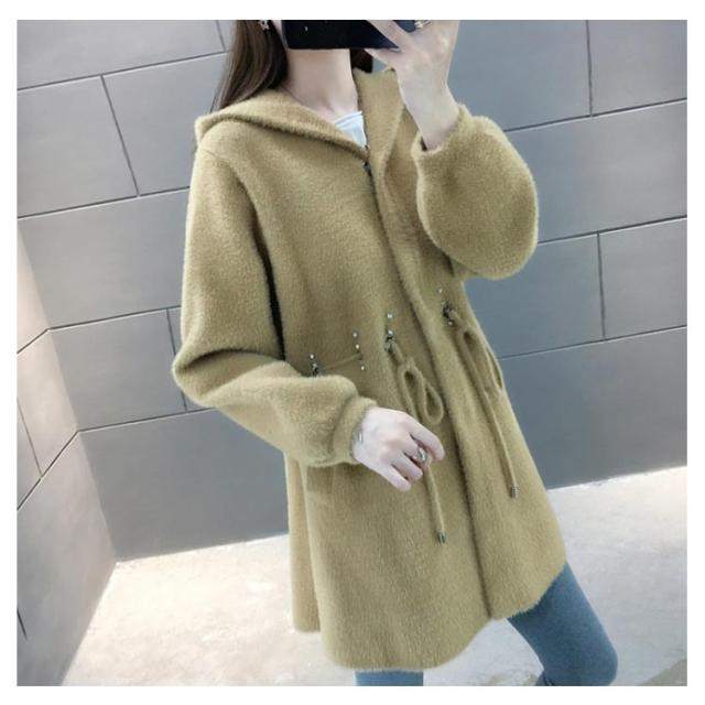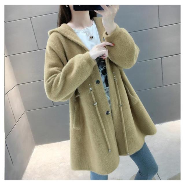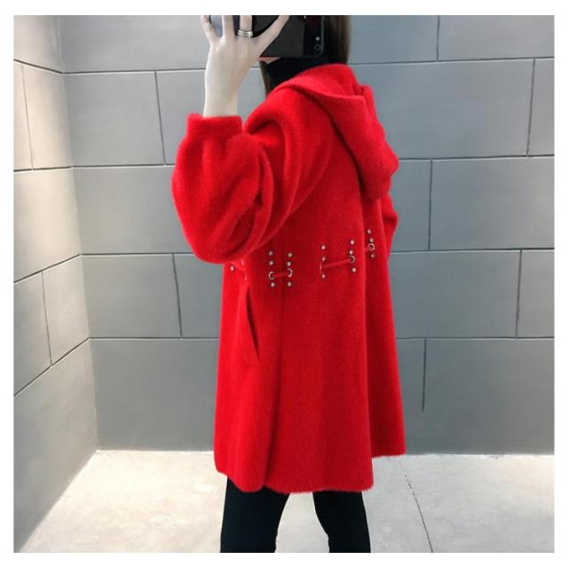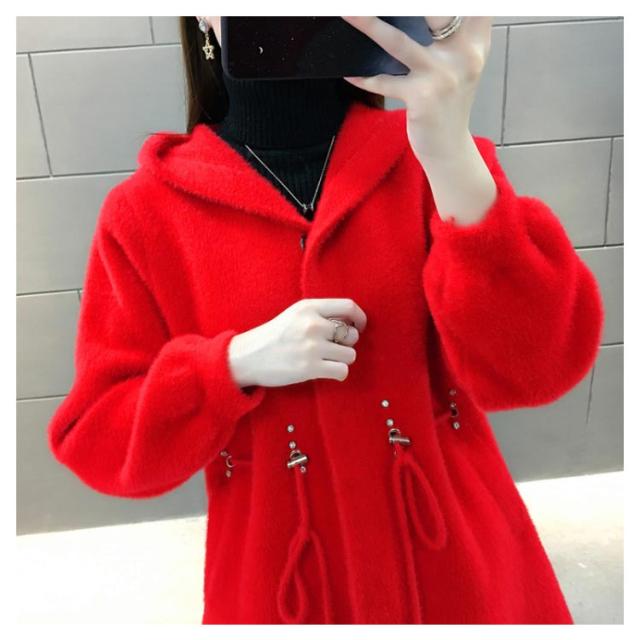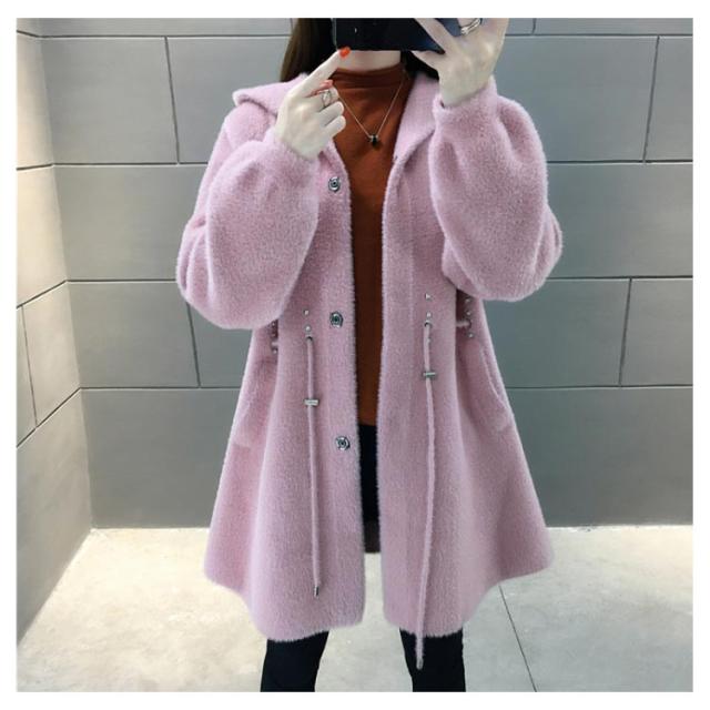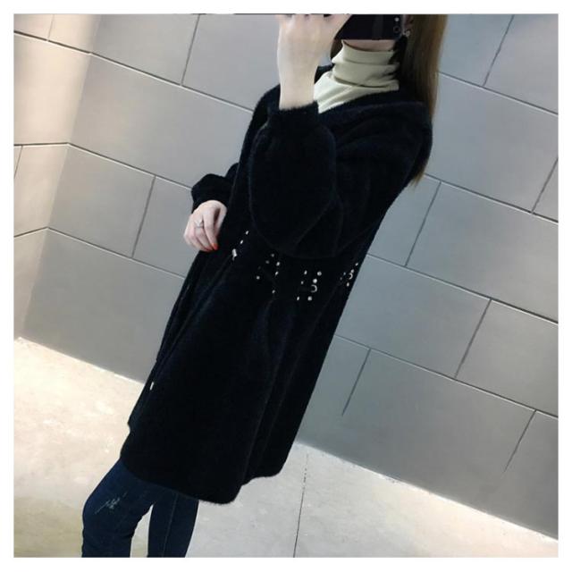 全6色×5サイズ!ボアコート モヘアタッチ カーディガン ロングカーディガン ロングコート フード付き ウエスト紐付き aライン 暖かい 秋冬 厚手 ふわふわ もこもこ 可愛い オトナ 女性