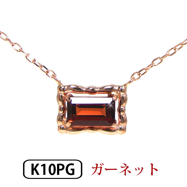 【数量限定セール特価!】 ガーネット ネックレス K10PG 10k 10金 ピンク ゴールド バゲットカット 両吊り