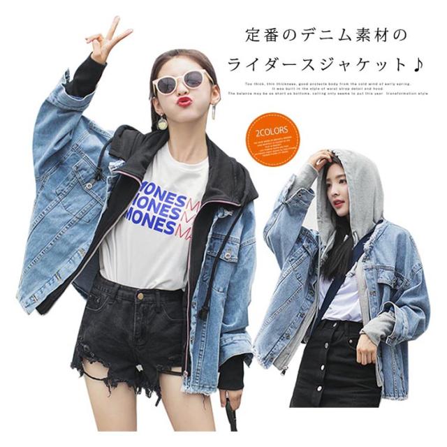 [2色]ライダースジャケット レディース 大きいサイズ デニム おしゃれ ショート丈 長袖 ライダーズ ジャケット アウター 体型カバー 可愛い 女子