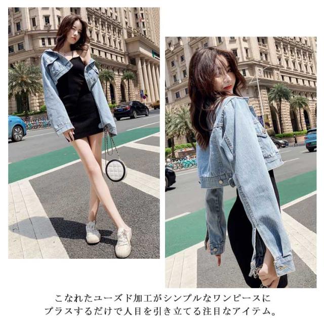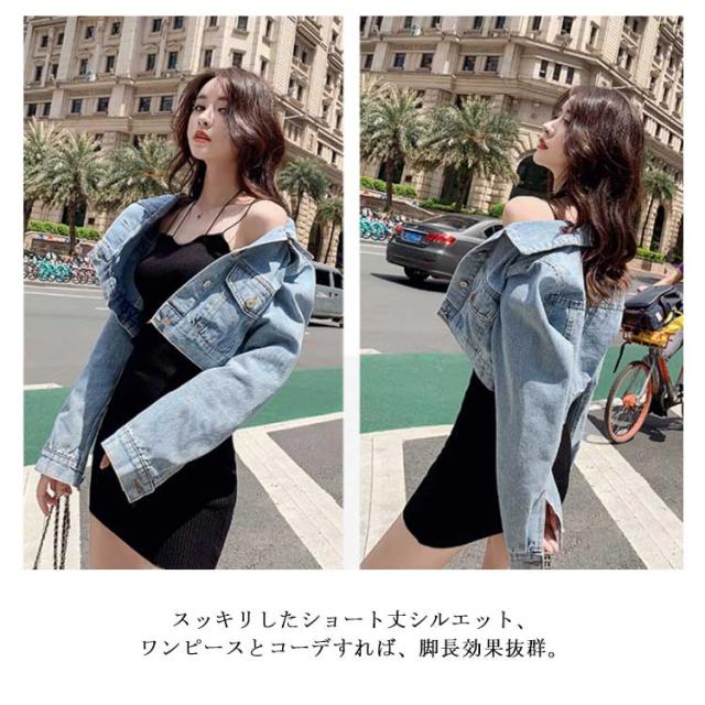 クロップド丈 デニムジャケット ショート丈 レディース Gジャン ゆる ジャケット アウター ジージャン 韓国ファッション おしゃれ 秋新作 春アウター