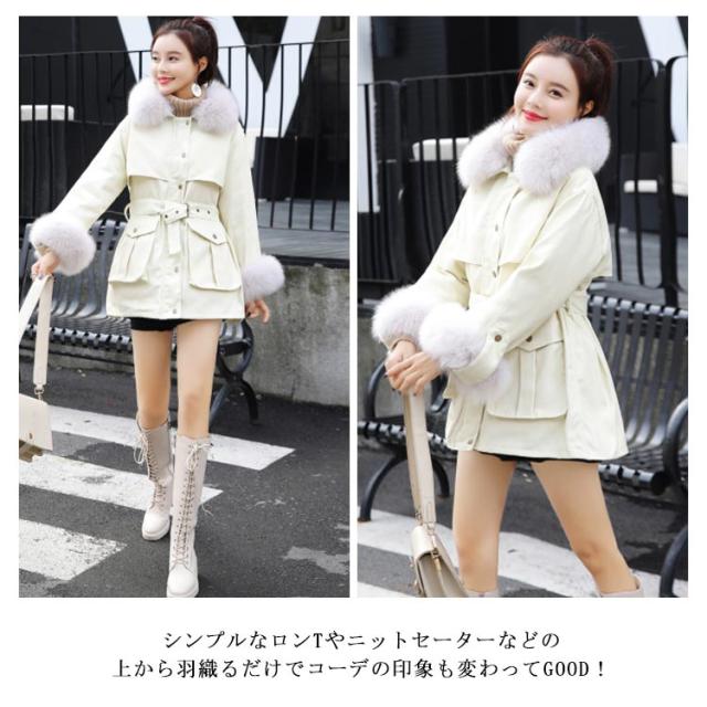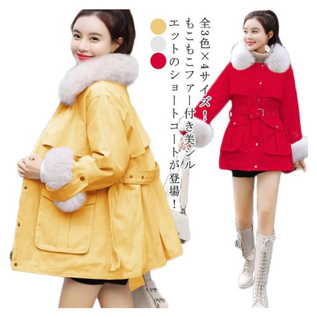 全3色×4サイズ!フェイクファー付き 冬服 冬物 アウター コート モッズコート ショート丈 ファー襟取り出し可 ふわふわ もこもこ 温かい 可愛い 秋冬