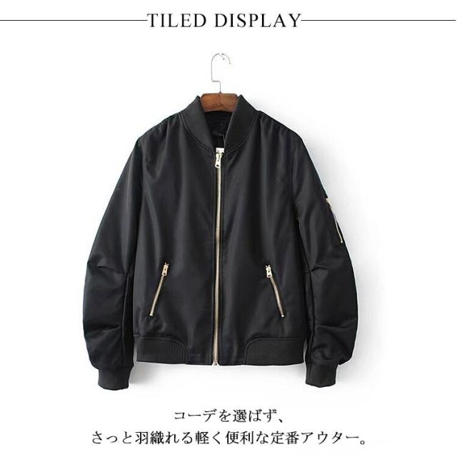 | 着回し自在!マニッシュなMA-1ブルゾン。 可愛らしい女性がMA-1ジャケットを羽織ることで、強くてかっこいいスタイルに変身! メンズライクなスタイルはもちろん、フェミニンなアイテムとも好相性。 ゆったり設計でトレンドを抑えた、ビッグシルエット気味のサイズ感。 是非今年流行りのMA-1でオシャレコーディネイトを楽しんでくださいね♪ | |
