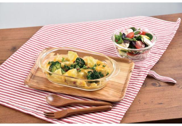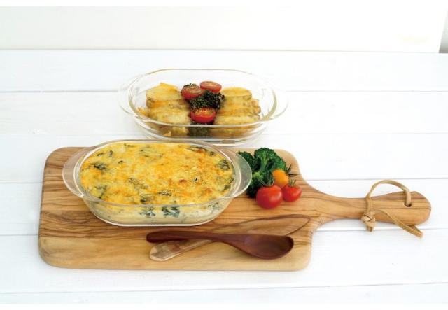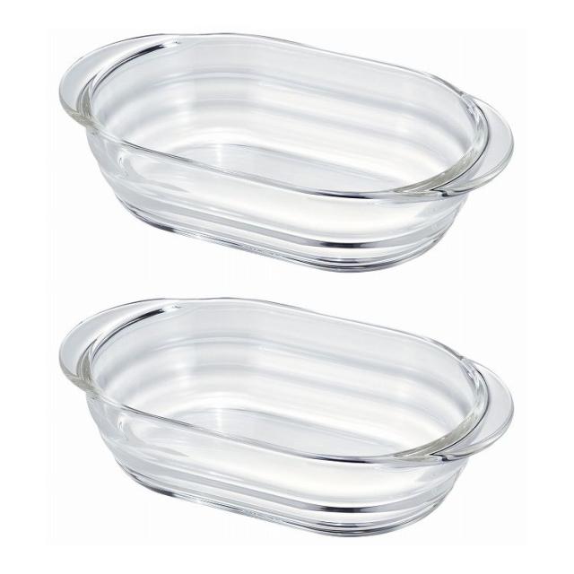 オーブン調理・レンジ調理・食器として使える耐熱ガラス製グラタン皿、お買い得2個セット。オーブントースターにも収まるサイズ。市販のグラタン素の容量にもぴったり合うサイズです。ウェーブ形状のデザインは食卓を彩り、食器としてもご使用いただけます。耐熱ガラスはにおい移りや色移りがしにくいので衛生的な安心素材です。