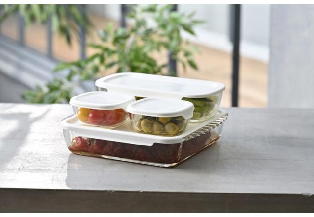 調理、食器、保存としても使える便利な耐熱ガラス製容器、お買い得4個セット。電子レンジにも対応している為、フタをしたままレンジ調理や温め直しが可能です。フタを外して、ガラス本体はオーブン調理もOK。シンプルなデザインなので、食卓に食器としてそのまま並べられます。中身が見えるので、保存の際も何を入れたか一目瞭然。角型の保存容器は冷蔵庫収納にも便利で、スペースにも困りません。耐熱ガラスはにおい移りや色移りがしにくいので衛生的な安心素材です。
