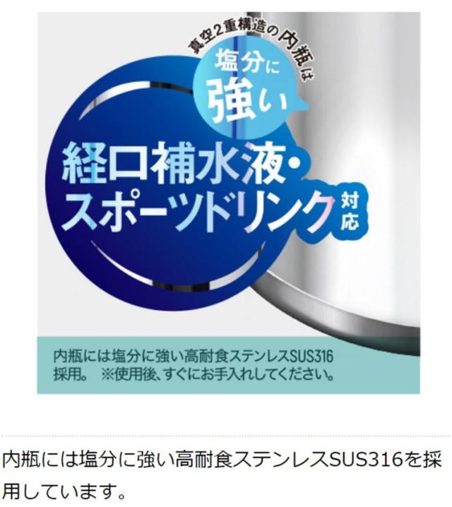 本体:ステンレス製真空二重瓶/フタ:ポリプロピレン樹脂/パッキン:シリコーンゴム