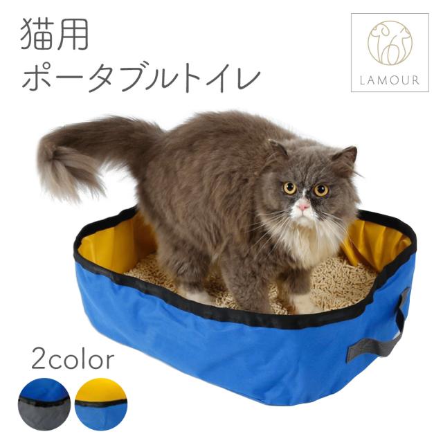 LAMOUR ラムール 猫用 ポータブル トイレ 折りたたみ 猫 防災グッズ 猫砂入れ 防水 アウトドア キャンプ 旅行 キャット