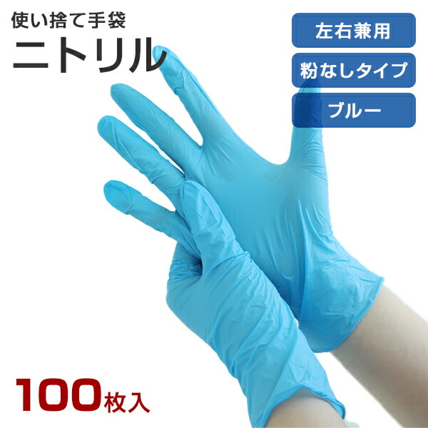 ニトリル手袋 100枚 ニトリル 使い捨て パウダーフリー 食品衛生法適合品 ブルー 手袋 グローブ 使い捨て手袋 粉なし 左右兼用 伸縮 強い 強度 料理 調理 食品会社 食品加工 老人ホーム 福祉施設 介護 看護 掃除 清掃 山善 YAMAZEN 【送料無料】