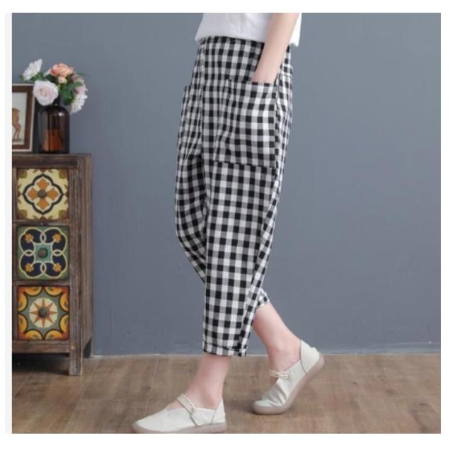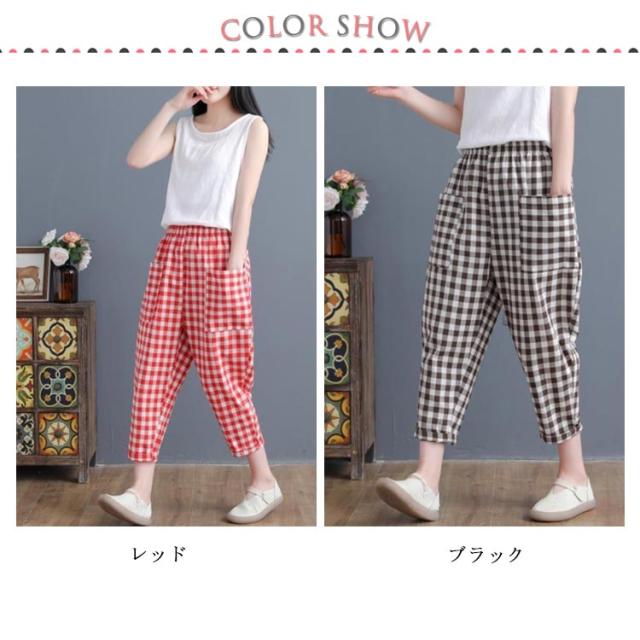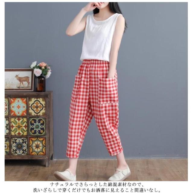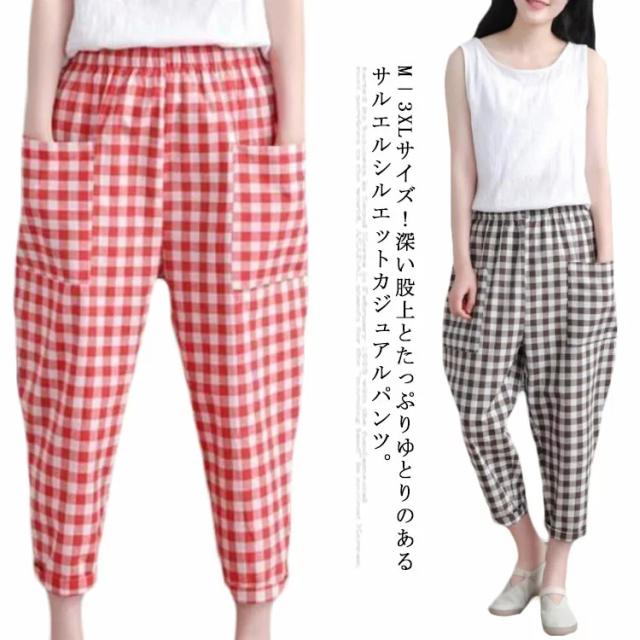 M−3XLサイズ!サルエルパンツ チェック柄 アンクルパンツ サルエル クロップドパンツ チェック柄 カジュアルパンツ 7分丈 パンツ カジュアル 春夏 レディース ゆったり 可愛い