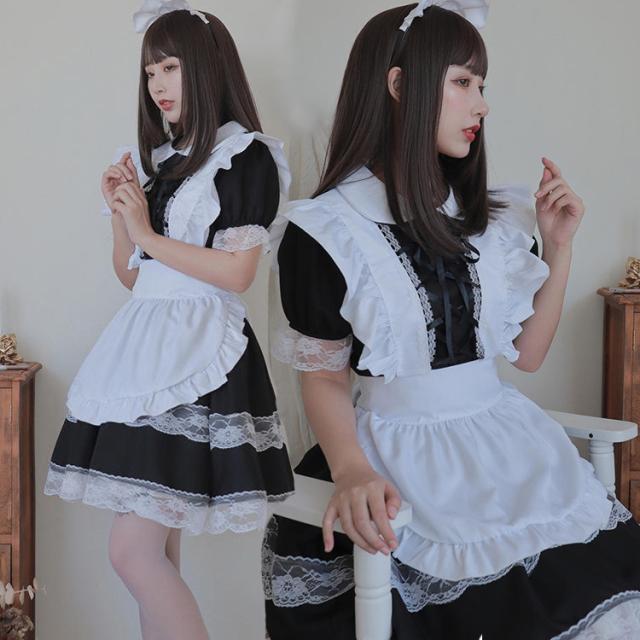 コスプレ 2層レース メイド服 コスプレ衣装 ハロウィン衣装 【送料無料】《代引き・日時指定・同梱不可》