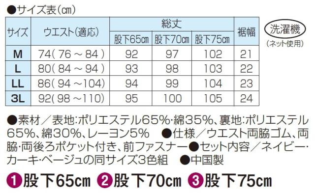 ●選べる股下丈/股下65cm、股下70cm、股下75cm