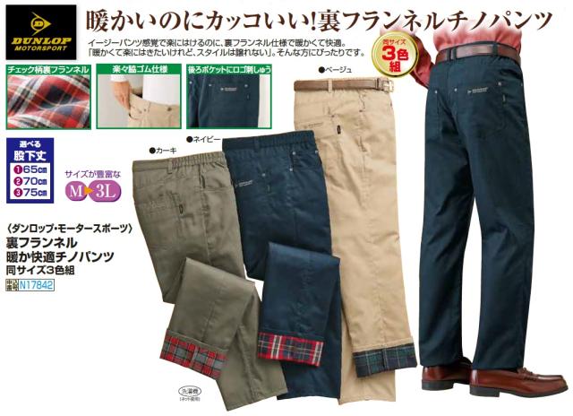 ダンロップ・モータースポーツ 裏フランネル暖か快適チノパンツ(同サイズ3色組) メンズ ボトムス 選べる股下丈 紳士 シニア ズボン チノパン ベージュ ネイビー カーキ チェック柄裏地 カジュアル シニアファッション 50代 60代 70代 80代 メンズ 紳士服 シニア 男性 大きいサイズ 敬老の日 ギフト プレゼント 父の日 お父さん 裾上げ済み