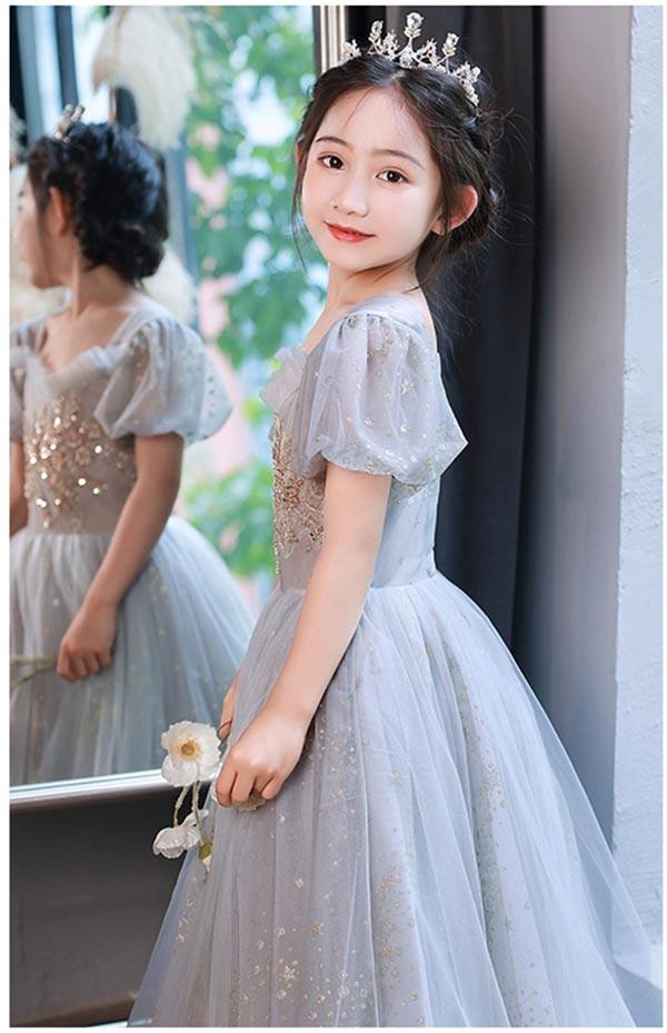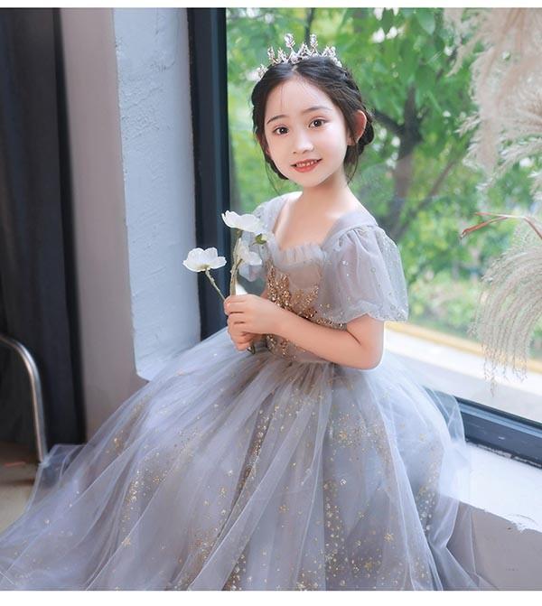 子供ドレス ワンピース フリル ロングドレス ピアノ発表会 子供 ドレス 半袖 チュール 女の子 フォーマルドレス パーティードレス 結婚式 七五三 発表会 フラワーガール キッズドレス ml179zezela