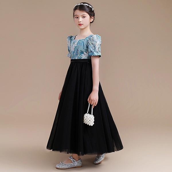 子供ドレス ワンピース フリル ロングドレス ピアノ発表会 子供 ドレス 半袖 チュール 女の子 フォーマルドレス パーティードレス 結婚式 七五三 発表会 フラワーガール キッズドレス ml157zezela