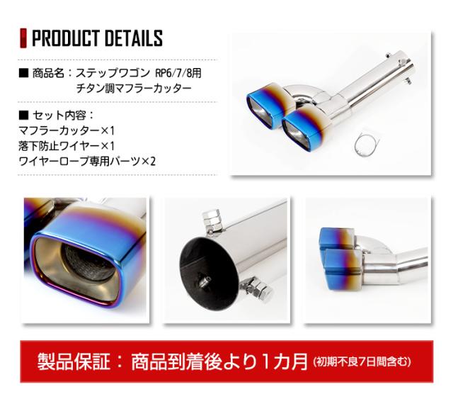 ステップワゴン RP6/7/8 専用 チタン調マフラーカッター 二本出し STEP WGN AIR SPADA RP6 RP7 RP8 メッキ パーツ ドレスアップ HONDA ホンダ