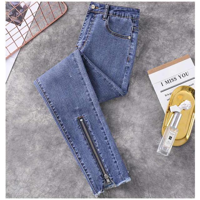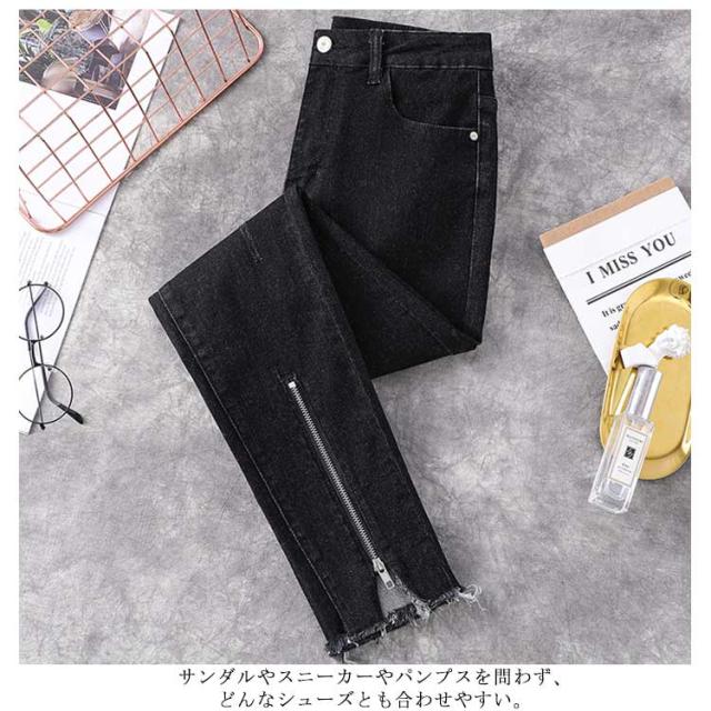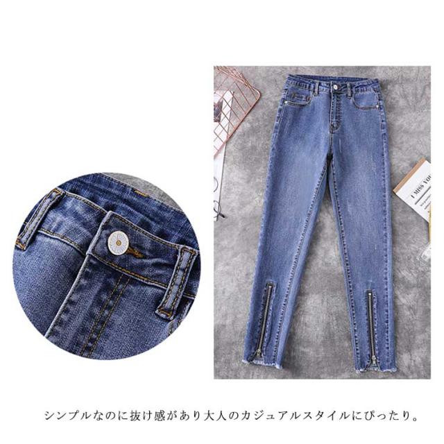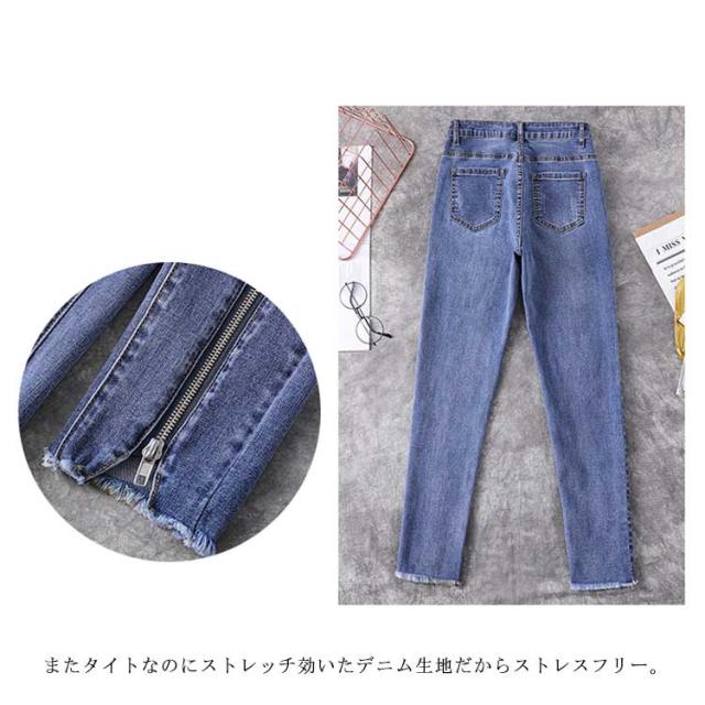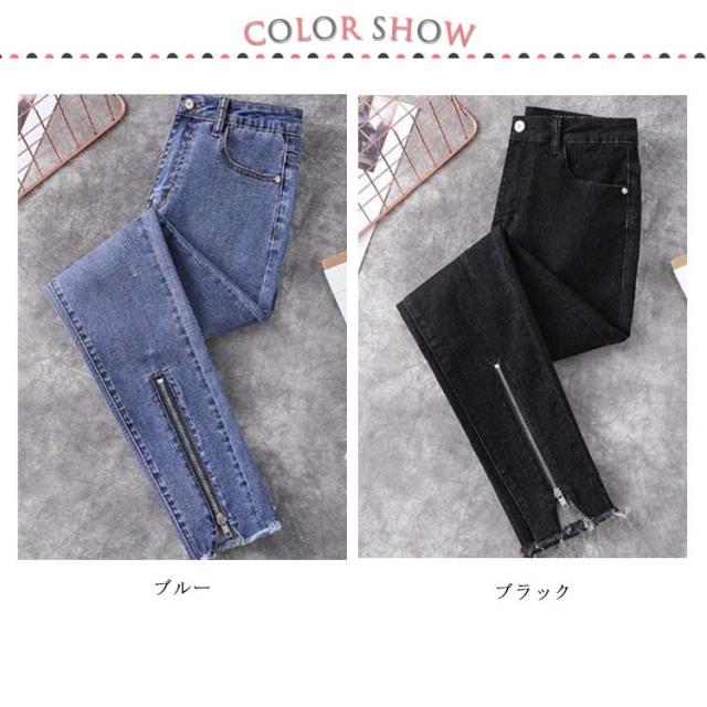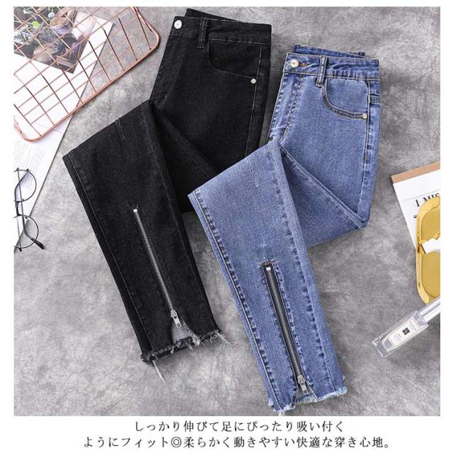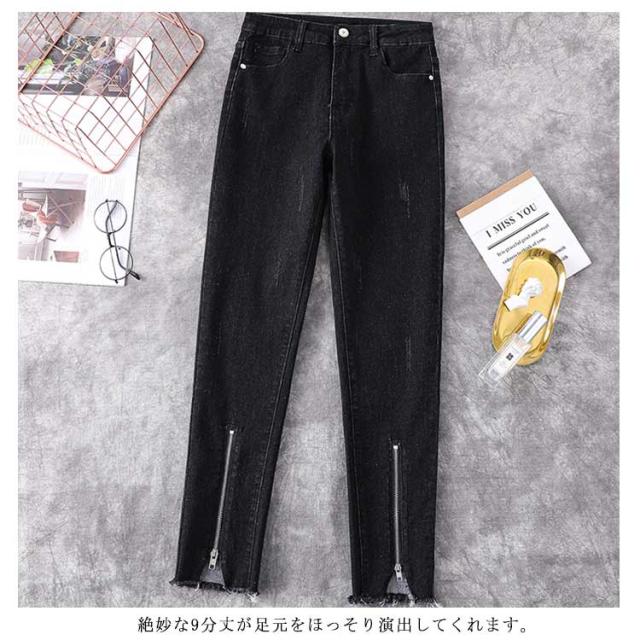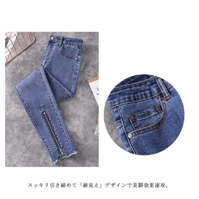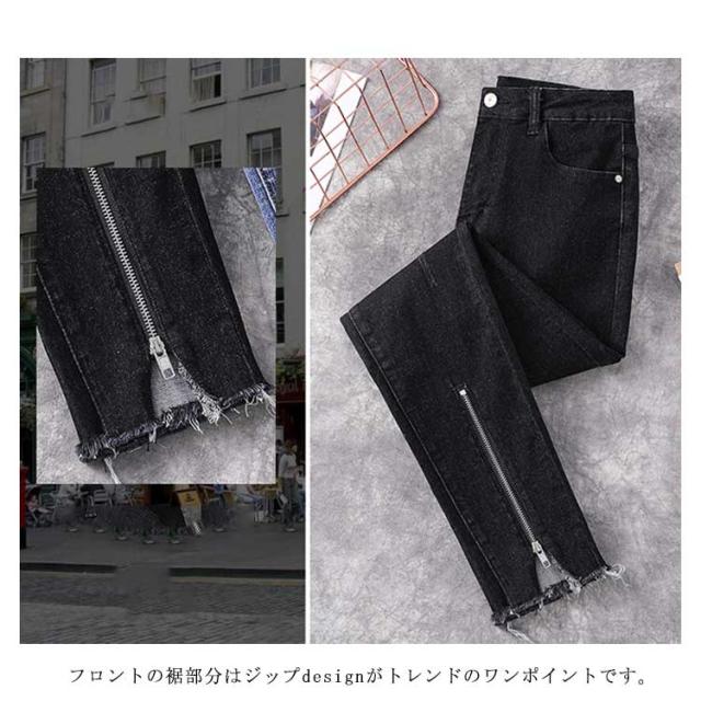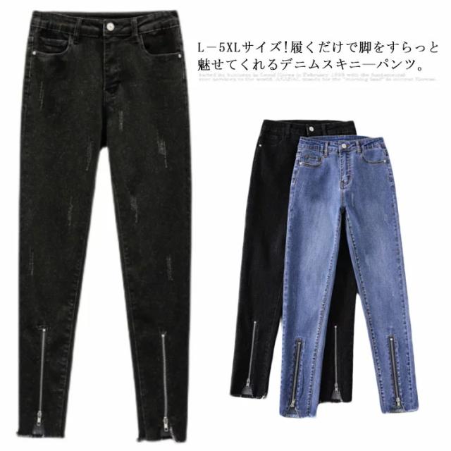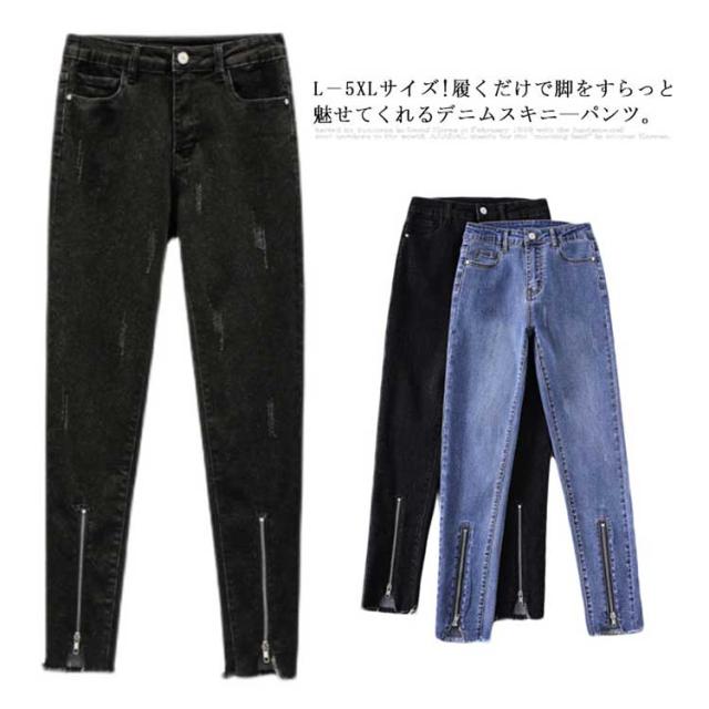 L−5XLサイズ!フロント裾ジップ付 スキニーデニムパンツ スキニーパンツ レディース デニムパンツ スキニー ジーンズ デニム 9分丈 美脚 春秋 おしゃれ 大きサイズ