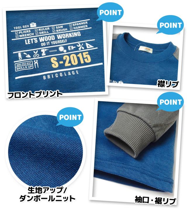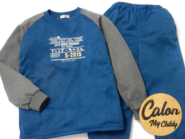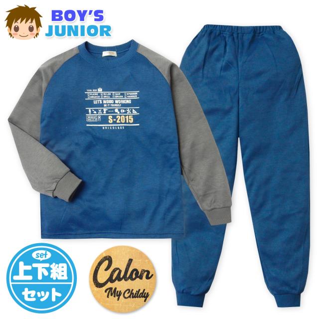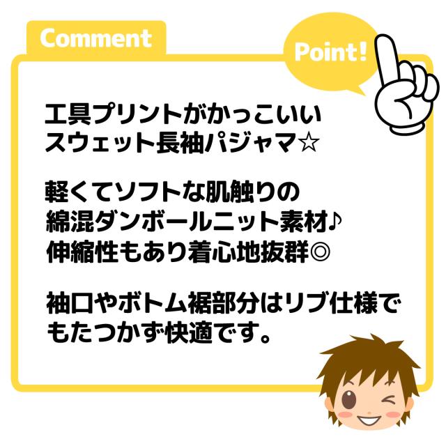 【送料無料】男児 ジュニア ダンボールニット 長袖 パジャマ 上下組 スウェット 丸首 工具 子供服 男の子 my-0060d-nv【メール便対応】