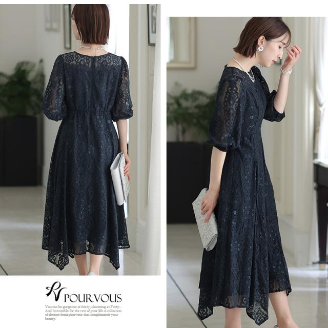 刺繍リボン付きレースワンピース【310221725】20代・30代・40代・54代長袖・膝丈・セットアップ・スカート・体型カバー・ジャケット・テーラード・スーツ・大きいサイズなど・即日発送・送料無料結婚式・婚活・披露宴・顔合わせ・二次会・同窓会・お呼ばれ・食事会・謝恩会・親族・七五三・お宮参り・冠婚葬祭・弔事・女子会・デート・入学式・卒業式・入園式・卒園式・ママ・マタニティー・セレモニー・セレブ・パーティー