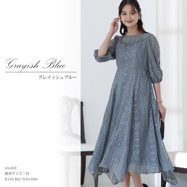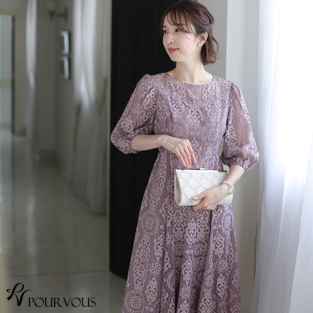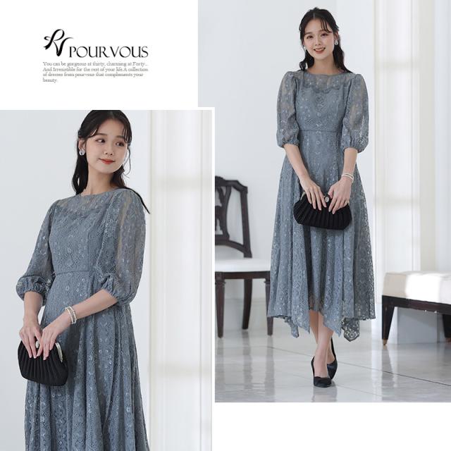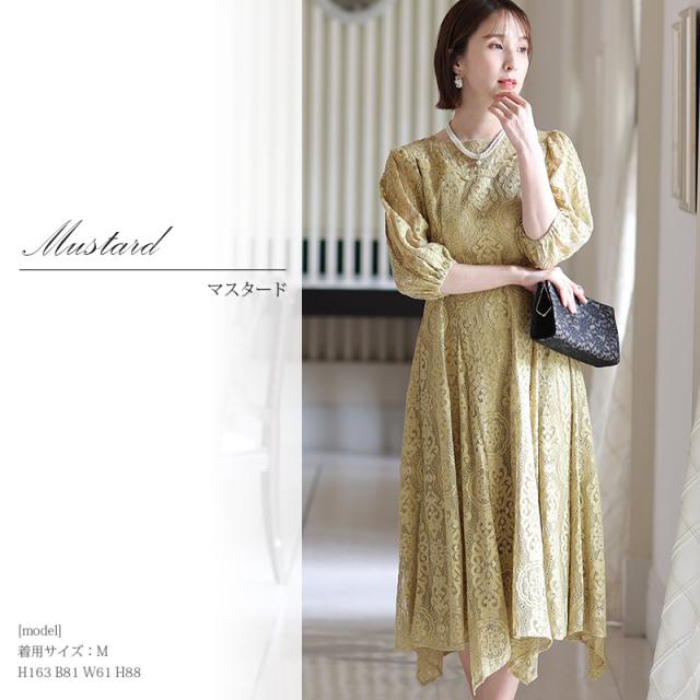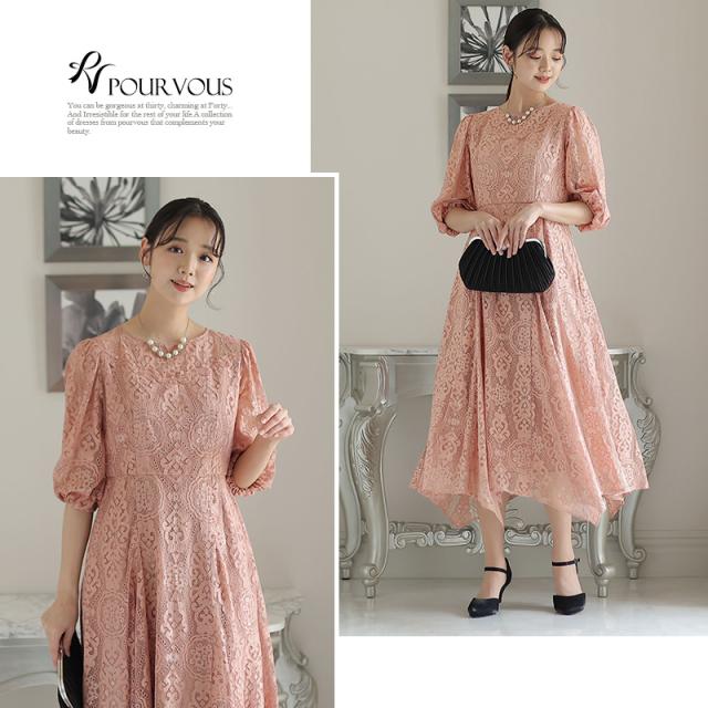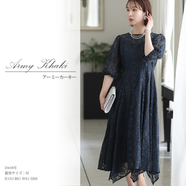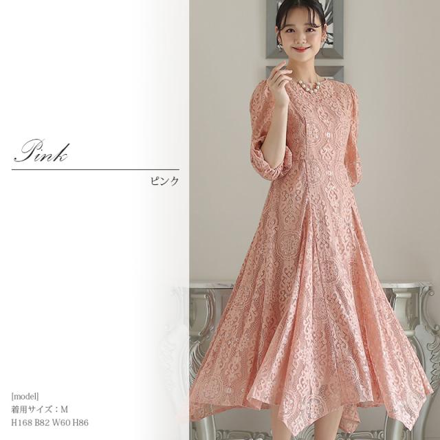 パーティードレス 結婚式 ワンピース ドレス フォーマルドレス 大きいサイズ 体型カバー 上品 フォーマル 小さいサイズ 小柄 お呼ばれ 顔合わせ 韓国 春 夏 秋 冬 20代 30代 40代 50代 ミセス 150 50代 袖あり 袖付き 袖 総レース レース ミモレ丈 膝下 リボン Aラ
