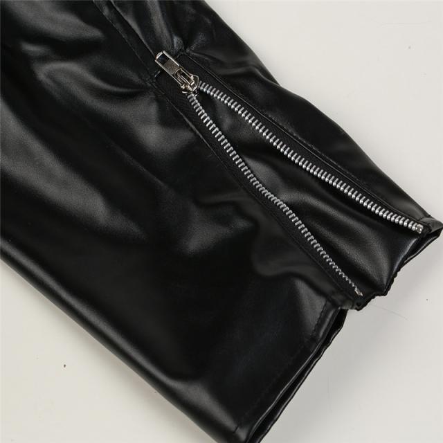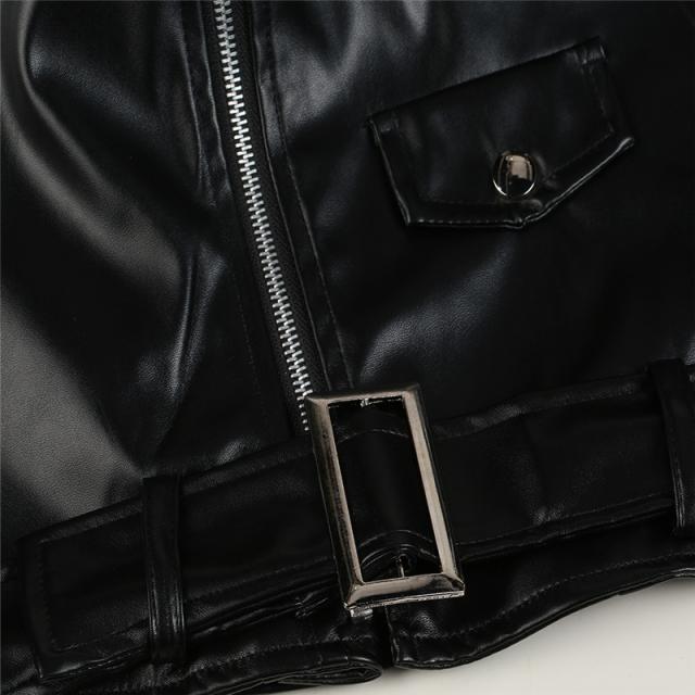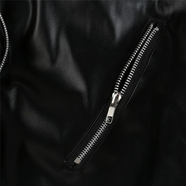 定番デザインのショート丈&レザー調の素材が格好良いライダースジャケットの登場です