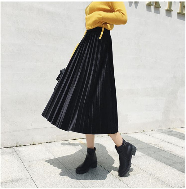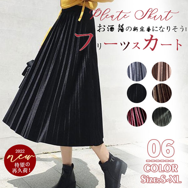 限定価格 激安 プリーツスカート ベロアスカート ロングスカート レディース マキシスカート ロング丈 ウエストゴム Aライン ハイウエスト おしゃれ