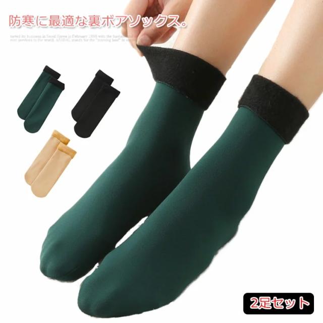 ソックス レディース 靴下 2足セット 裏ボア 裏ボアソックス ルームソックス 部屋着 裏起毛 防寒 ふわふわ 伸縮性 厚手 無地 定番 万能アイテム シンプル 暖かい お洒落 秋冬