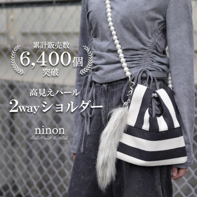 肩紐の大振りパールがアクセントになって、オシャレ&可愛い仕上がりです。