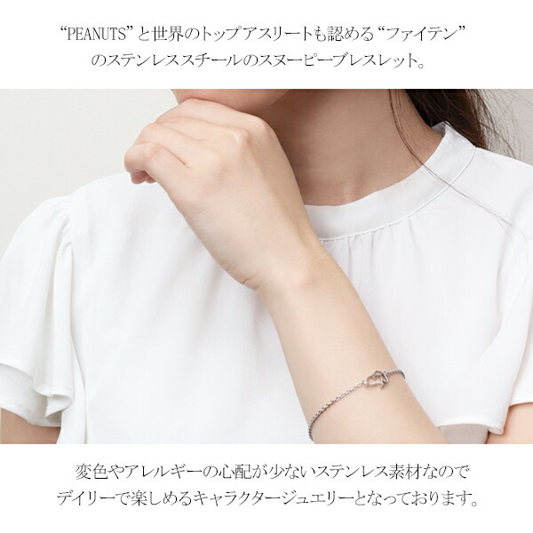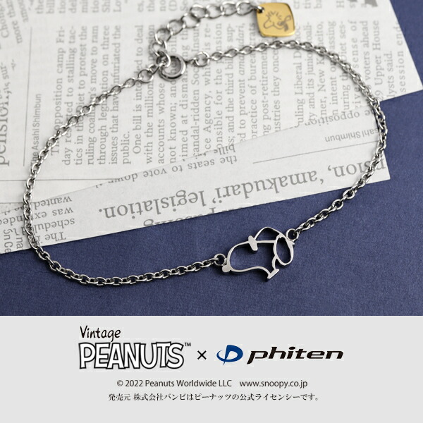 スヌーピーで有名な“PEANUTS”と世界のトップアスリートも認める“ファイテン”のステンレススチールのシルエットタイプのブレスレット。