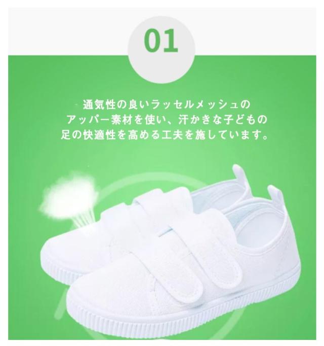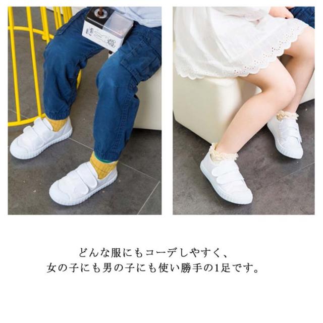 【送料無料】上履き キッズ 子供 靴 スニーカー 上靴 男の子 女の子 幅広 甲高 履きやすい 運動 幼稚園 シューズ ジュニア 軽量 おしゃれ マジックテープ 通気 メッシュ 軽い 無地 シンプル ユニセックス 通園 通学 公園 ホワイト
