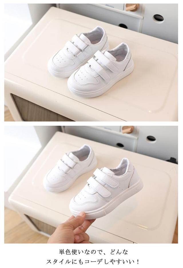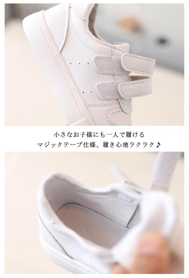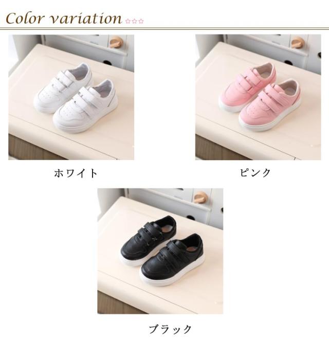 【送料無料】キッズ スニーカー 女の子 男の子 軽量 子供靴 かわいい 子供 ジュニア 小学生 マジックテープ 軽い かわいい おしゃれ シンプル 無地 滑りにくい 履きやすい 通園 通学 公園 ユニセックス ジュニア ホワイト ブラック ピング